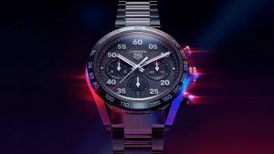 Watches have long been influenced by motorsports, but collaborations with automakers rarely guarantee a spot on the sales podium. This timepiece features a distinctive tachymeter scale engraved on the bezel. The Porsche colours of red, black, and grey which also recall historic Heuer models are incorporated throughout the watch. On clear display through the transparent crystal case back is the oscillating mass. This has been redesigned in affectionate tribute to Porsche’s celebrated steering wheel. It is printed with Porsche and TAG Heuer. The dial’s asphalt effect, created especially for this watch, perfectly expresses a passion for the road. This also includes Arabic numerals which suggest the numbers on the dashboard of fine Porsche sports cars.