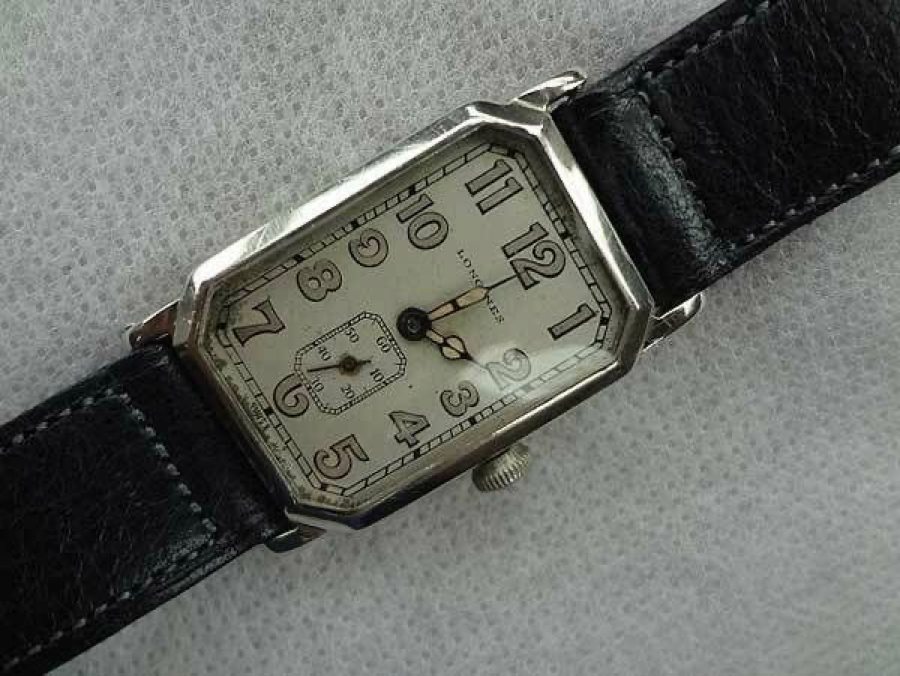 Early forms of luxury watches were remarkably simple. The design was merely to tell time, but most maintained a stop watch feature that was made popular by the original pocket watch styles of the era. Although most watches during this time did feature a round watch face, square or elongated watch face styles were popular as well. Below, we find a beautiful depiction of one of Longnes, a watch company popular during that era. The vintage style with its black wrist band and easy to read time face is an ideal example of a luxury time piece from the 1920s.